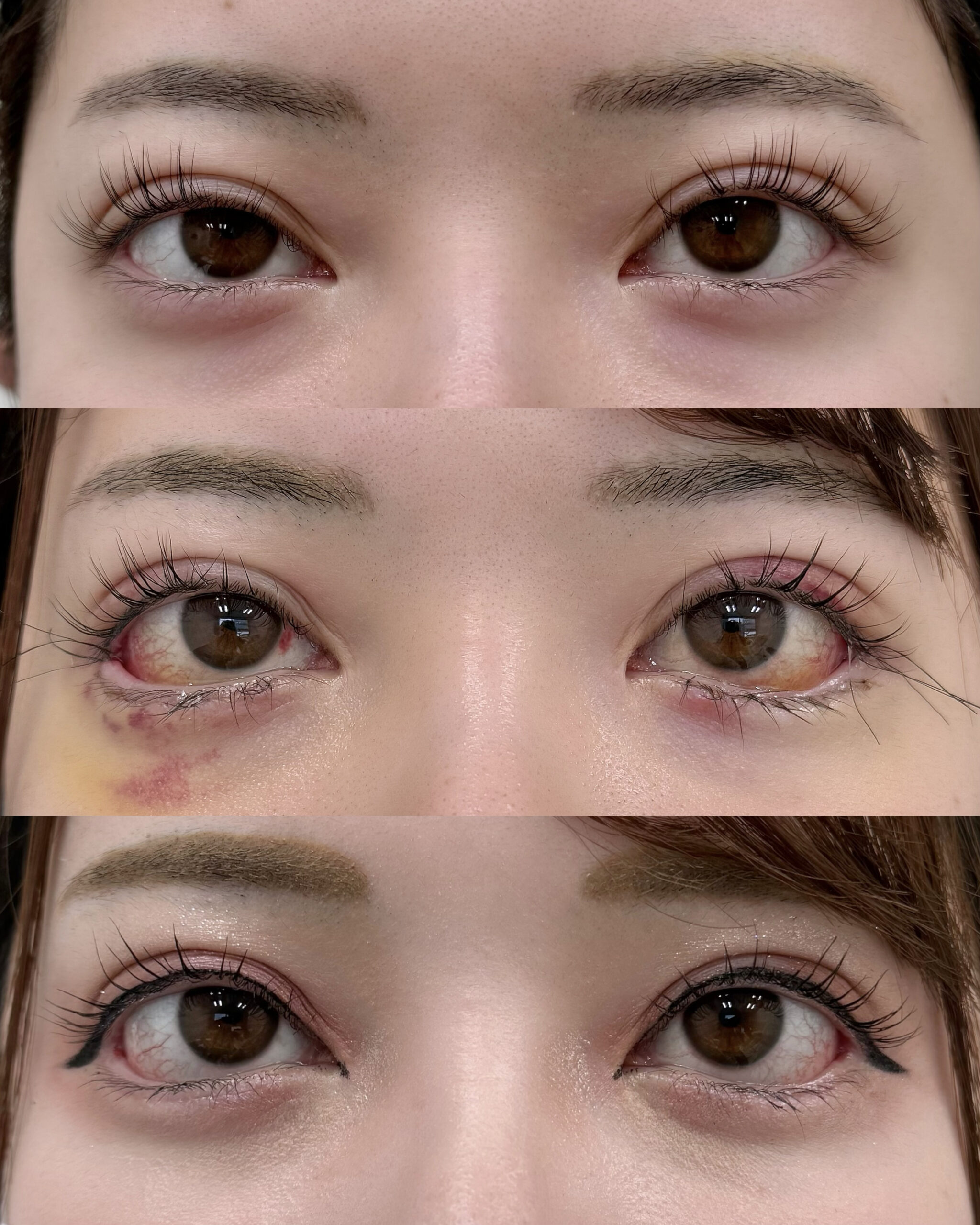腫れ,内出血,感染,傷,創部離開,左右差,三白眼,内反・外反,やり過ぎだと感じる,涙袋が減る,逆さまつ毛,過去の施術の既往で硬くなっていてうまく下げられない可能性など