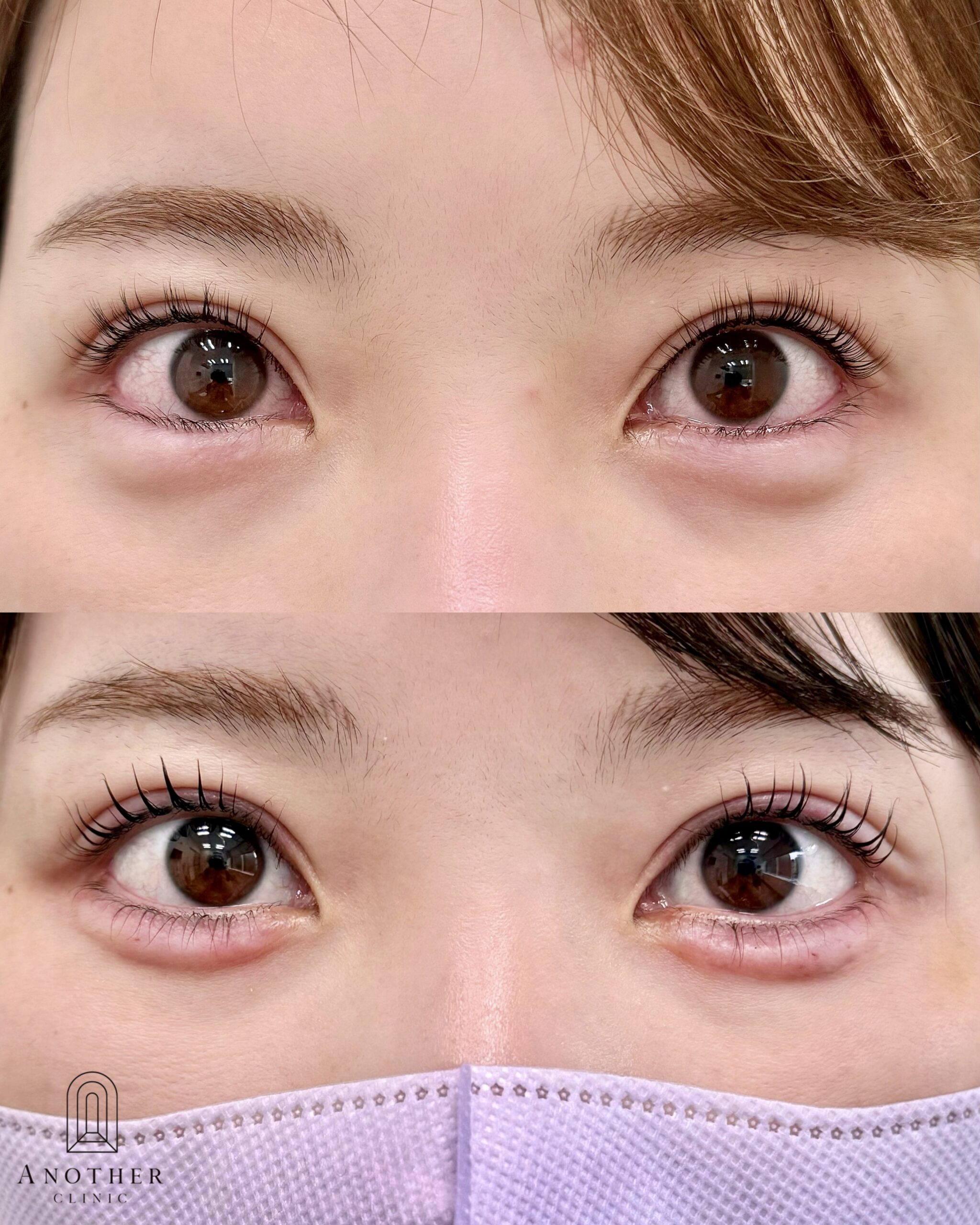 逆さまつ毛修正とともに外科的涙袋形成(縫合式)+ヒアルロン酸をした症例