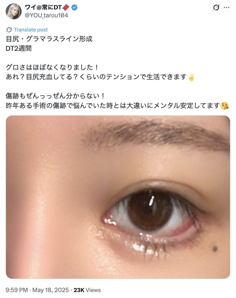 たれ目形成(グラマラスライン形成)のダウンタイム体験談|知恵袋やXの声を紹介