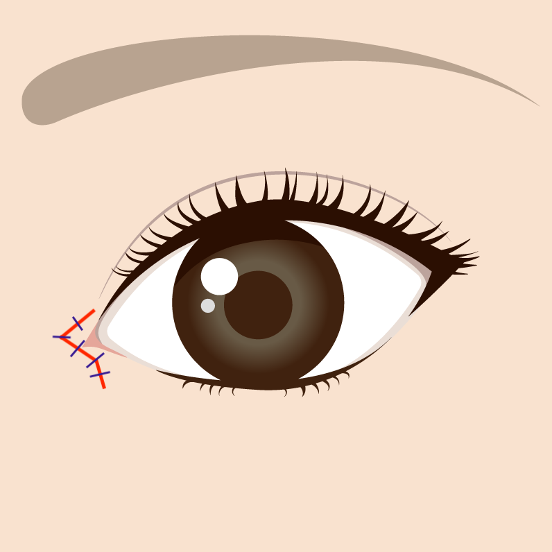 VY法は目頭をV字に状に切開し、Y字状に縫合します。