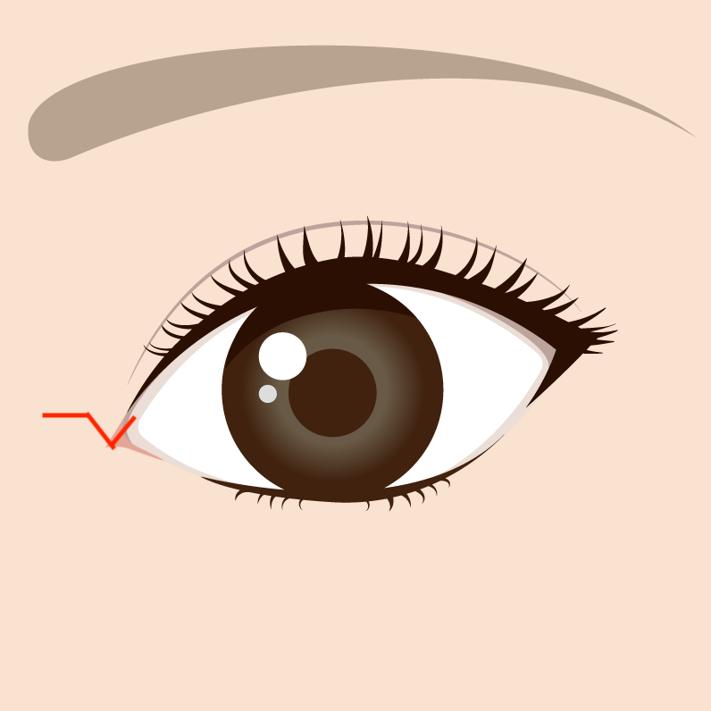 目頭切開は、目頭にある「涙丘(るいきゅう)」というピンクの部分を覆っている蒙古襞(もうこひだ)を切開し、目の横幅を内側に広げる施術です。
