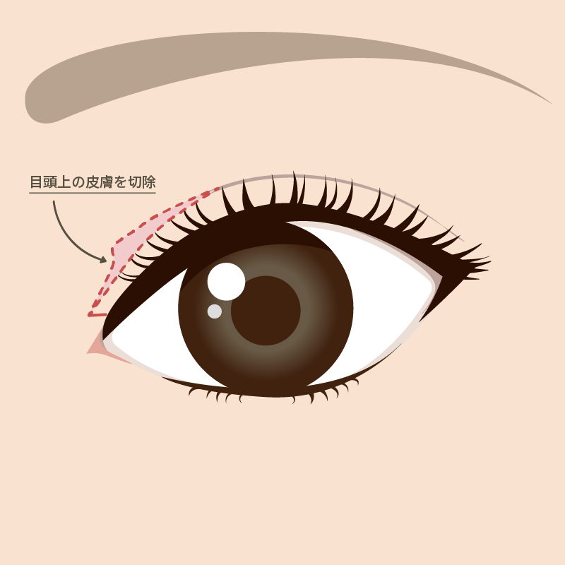 目と目の距離をあまり近づけずに、上まぶたにかぶる皮膚だけを自然に取り除くことで、よりソフトで優しい目元の印象を作ることができます。